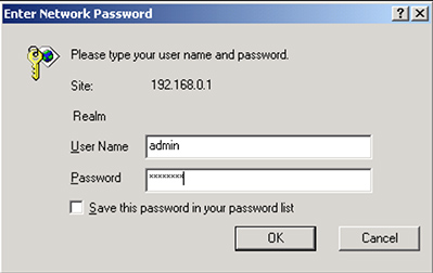 A security screen will now prompt you to enter a username and password. On most routers, by default, the username is admin and the password is password. If that is not the case, use any variation of that like enter admin for the username and leave password blank, etc…